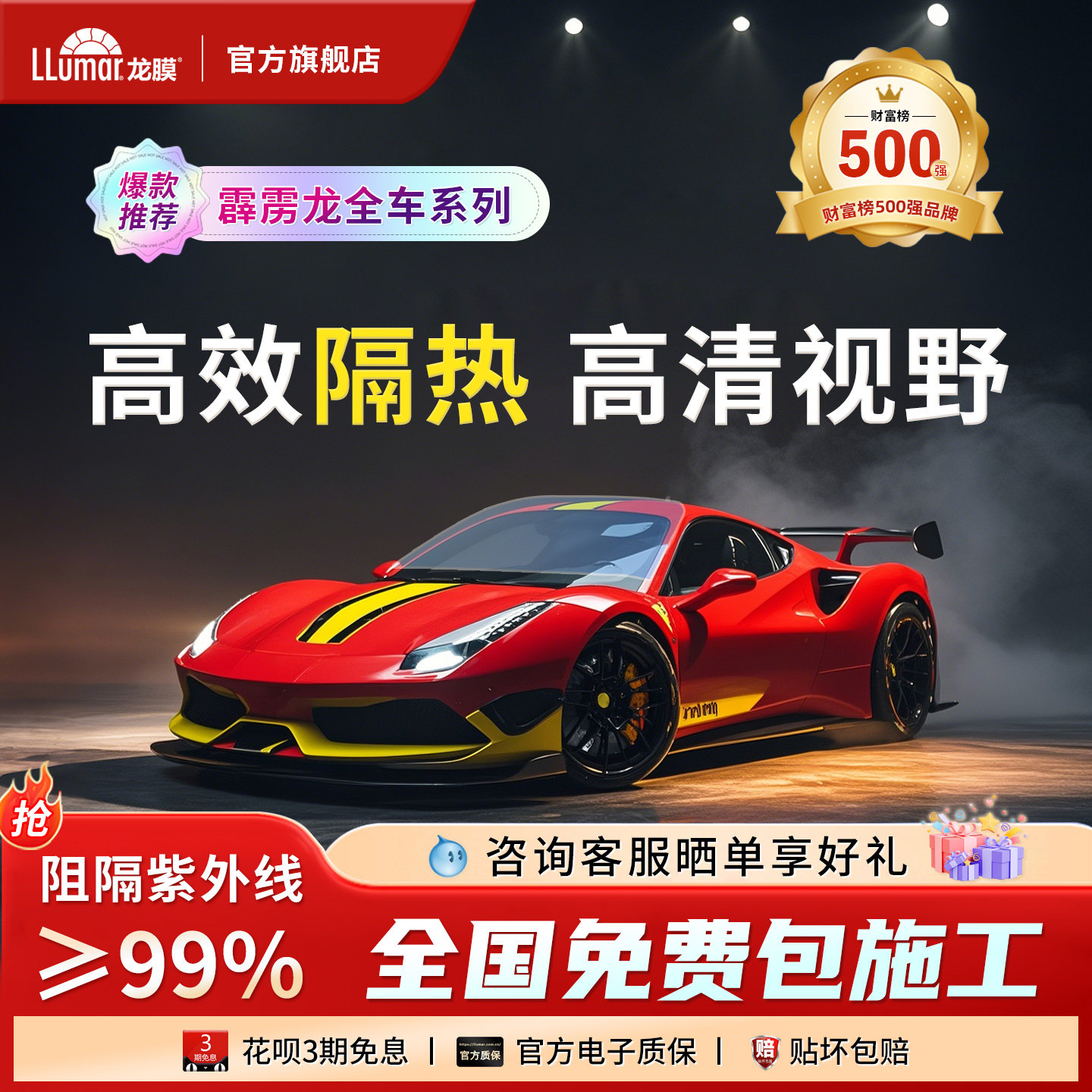 龙膜汽车窗玻璃贴膜太阳防晒隔热膜防爆防紫外线霹雳龙全车陶瓷膜