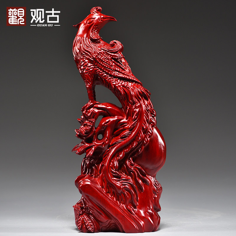 红色实木质雕刻吉祥凤凰摆件红木家居客厅装饰工艺品新婚乔迁送礼