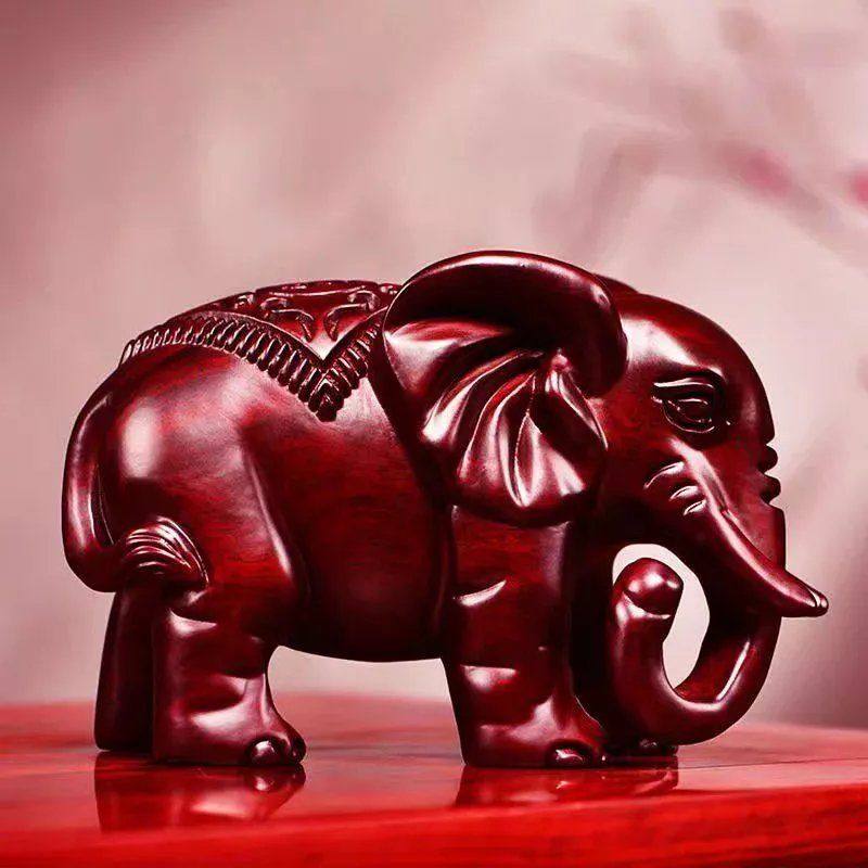 红花梨木大象摆件实木质雕刻一对象红木家居玄关办公室装饰工艺品