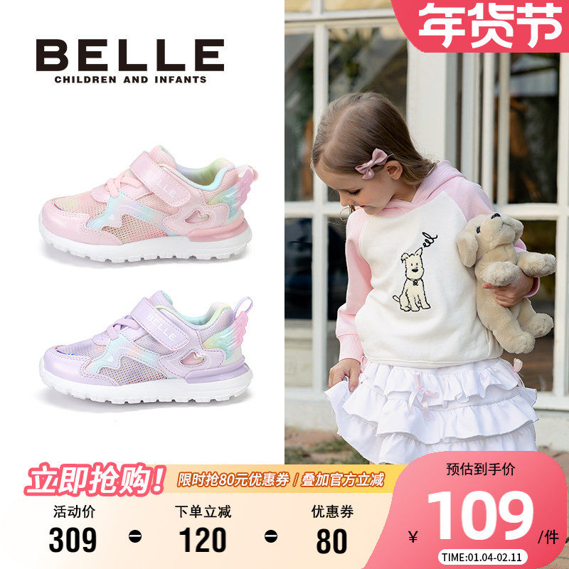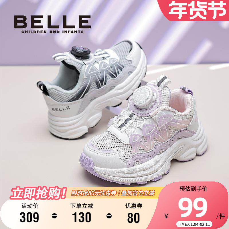 百丽童鞋2025新款春夏透气网面鞋运动鞋儿童小女孩时尚软底休闲鞋