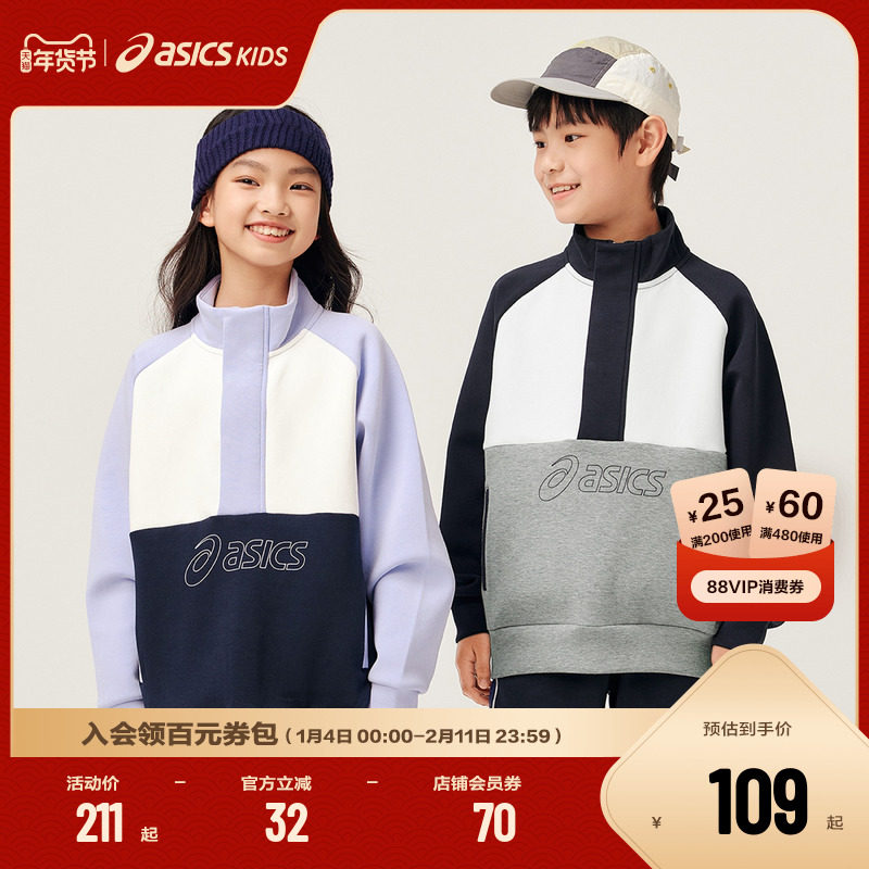 ASICS/亚瑟士童装长袖卫衣舒适春夏新品宽松运动卫衣T恤半开拉链