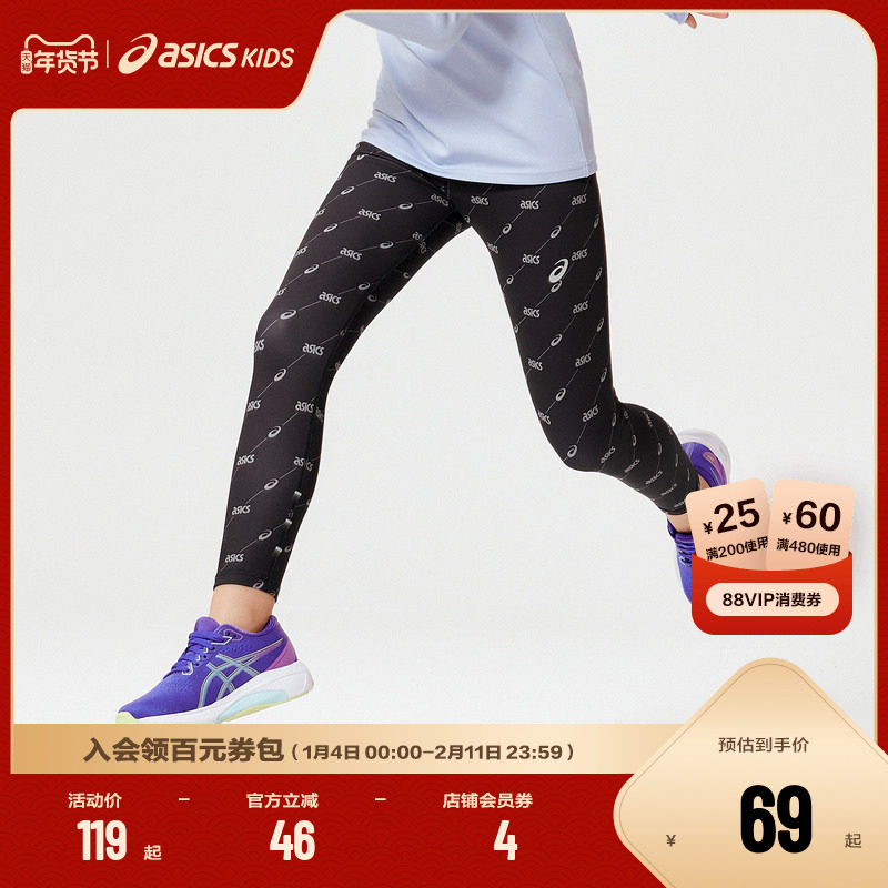 ASICS/亚瑟士童装舒适春夏女儿童加绒保暖运动百搭针织打底裤