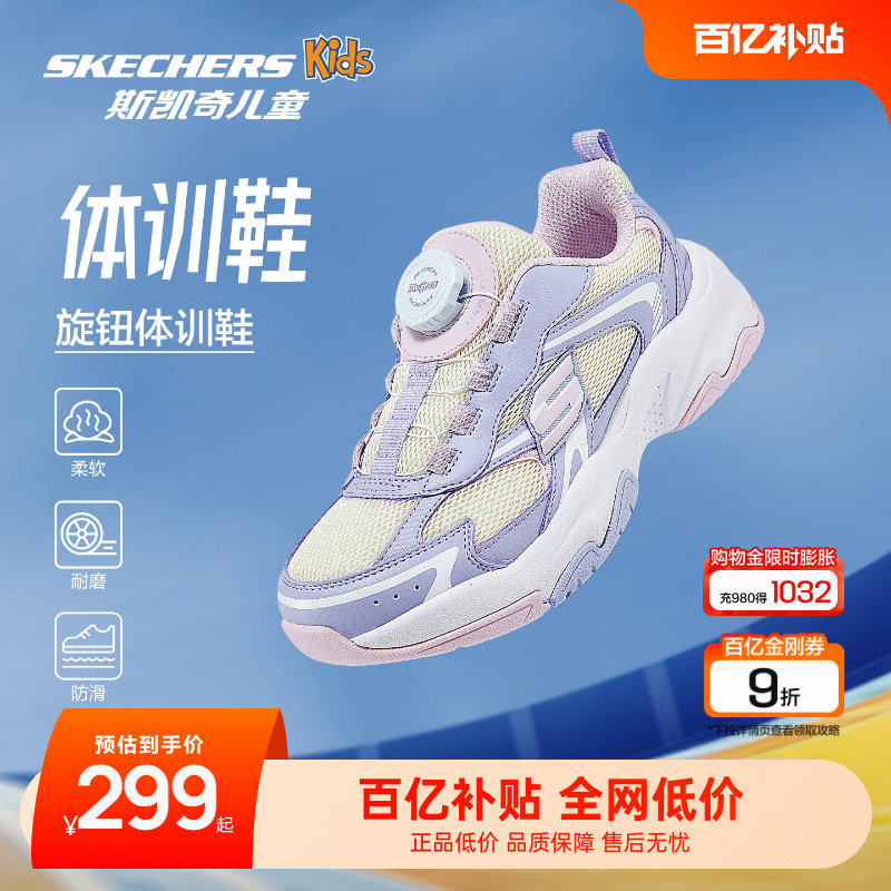 Skechers斯凯奇儿童跃界机能鞋春夏运动鞋复古女童旋钮老爹休闲鞋