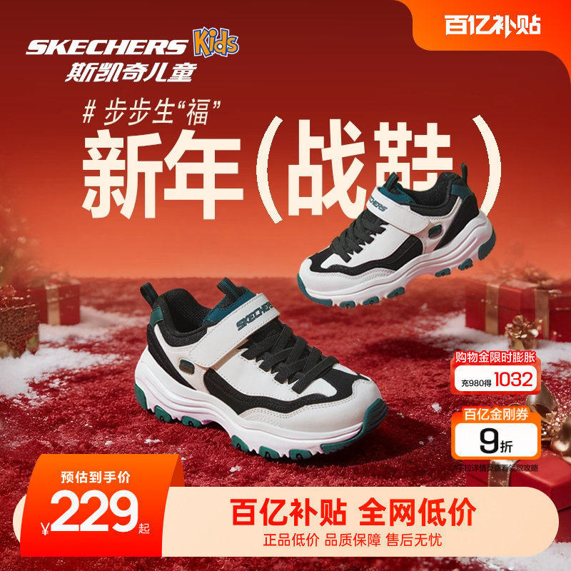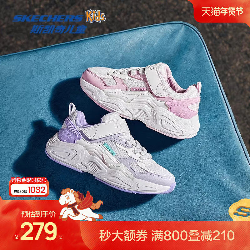 Skechers斯凯奇儿童春夏款休闲鞋女童时尚舒适运动鞋中大童老爹鞋