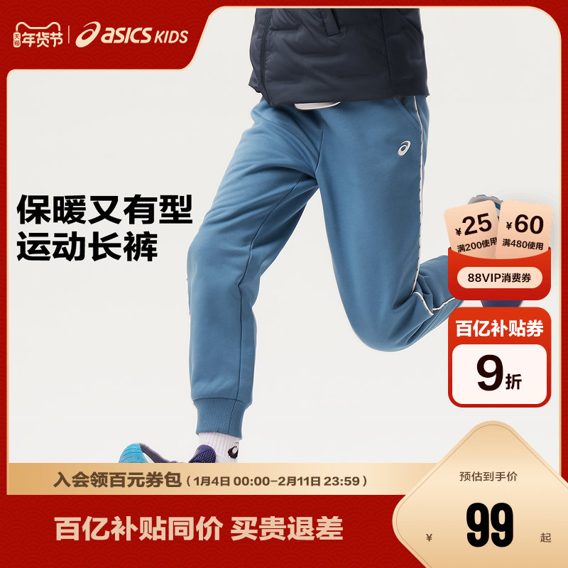 Asics/亚瑟士童装舒适年春夏季新品针织卫裤加绒加厚保暖运动长裤