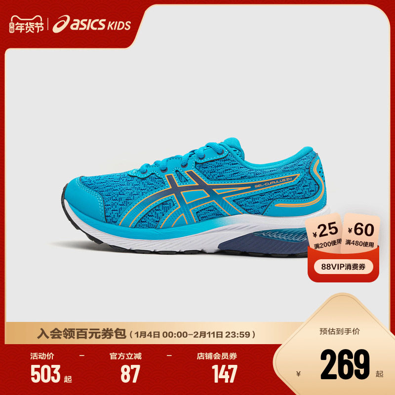 ASICS/亚瑟士童鞋春夏新款专用男女童跑步运动鞋减震CUMULUS
