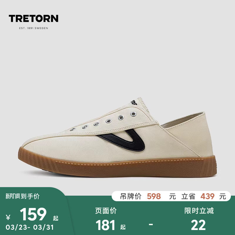 瑞典TRETORN秋男女帆布鞋一脚蹬踩脚薄底懒人板鞋半踩拖鞋小白鞋