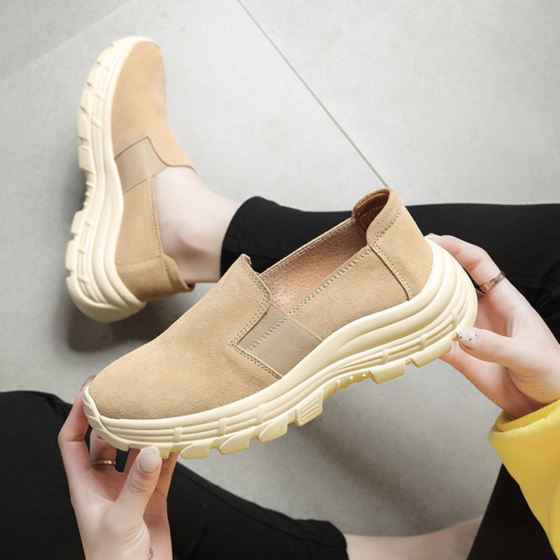 舒适厚底休闲鞋女反绒牛皮轻便不累脚一脚蹬懒人鞋平底孕妇妈妈鞋