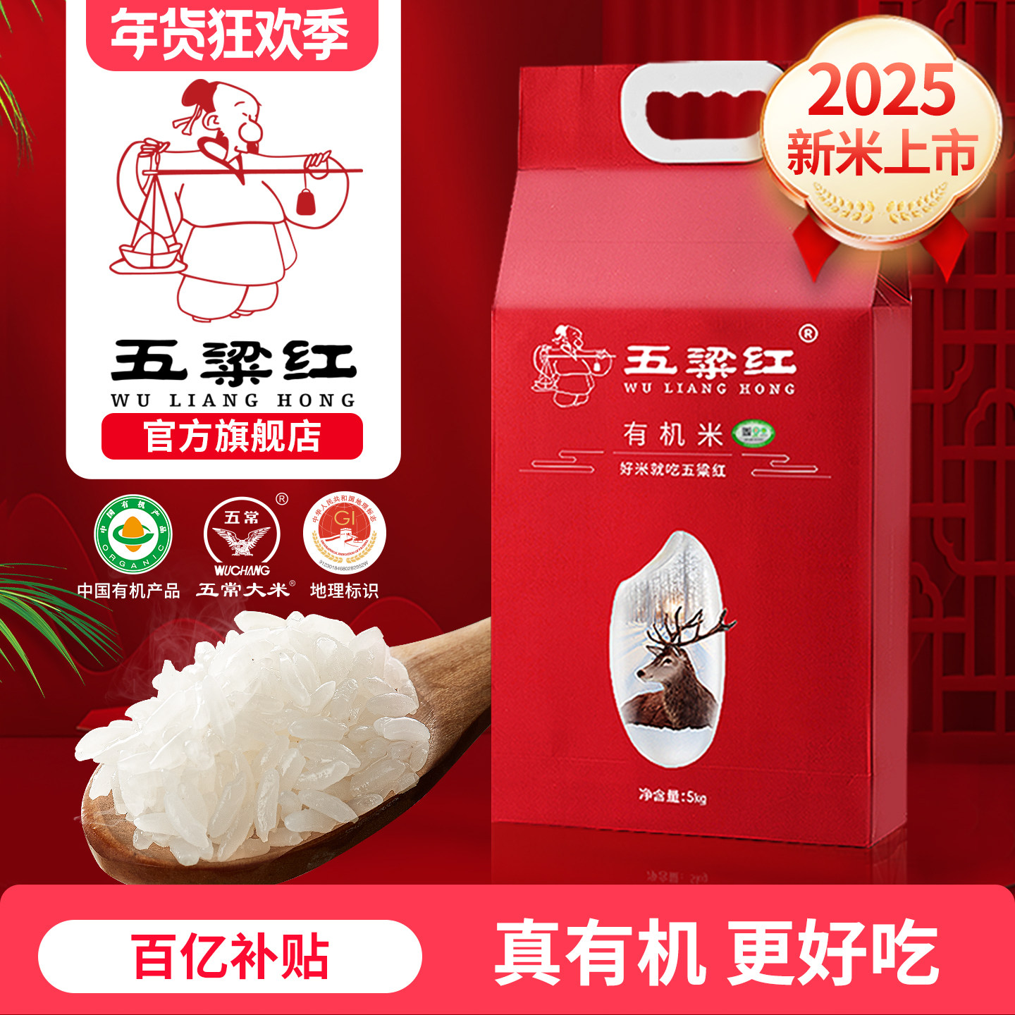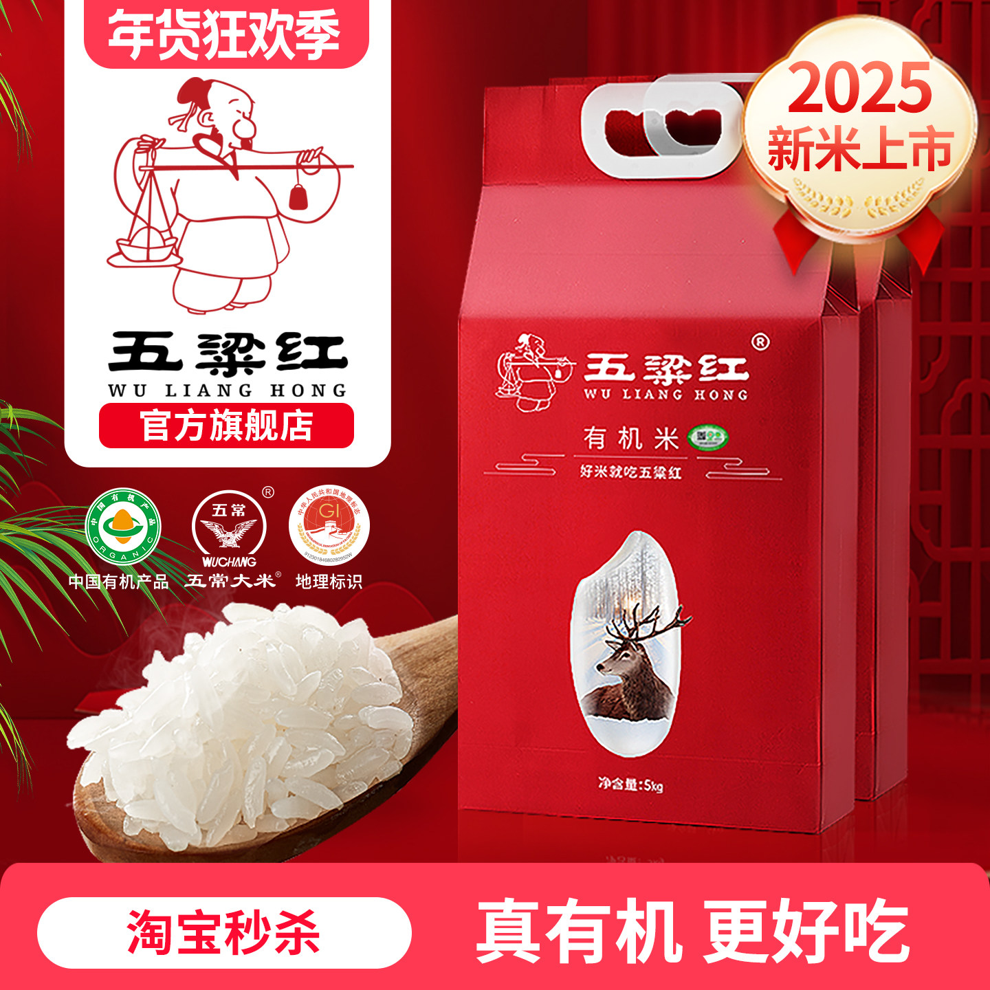 2025新米五梁红正宗特等有机五常大米5kg稻花香2号黑龙江东北大米