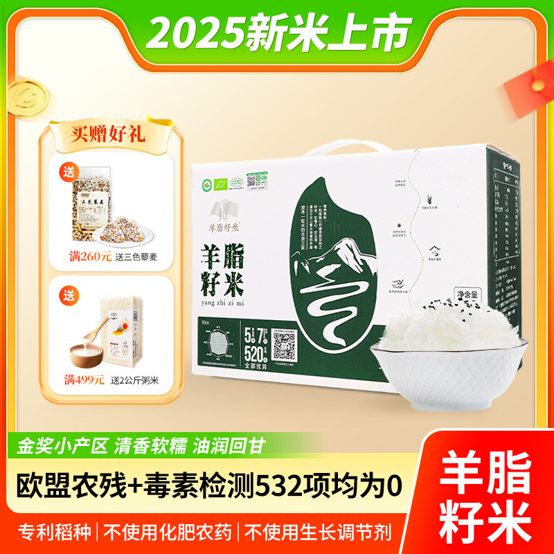 2025新米新疆羊脂籽米 有机大米胚芽米5kg长粒香米优质粳米礼盒装