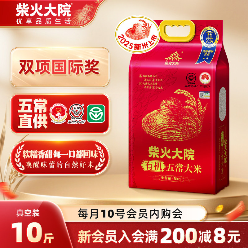 2025年新米柴火大院有机五常大米5kg东北优质一等真空10斤装礼赠