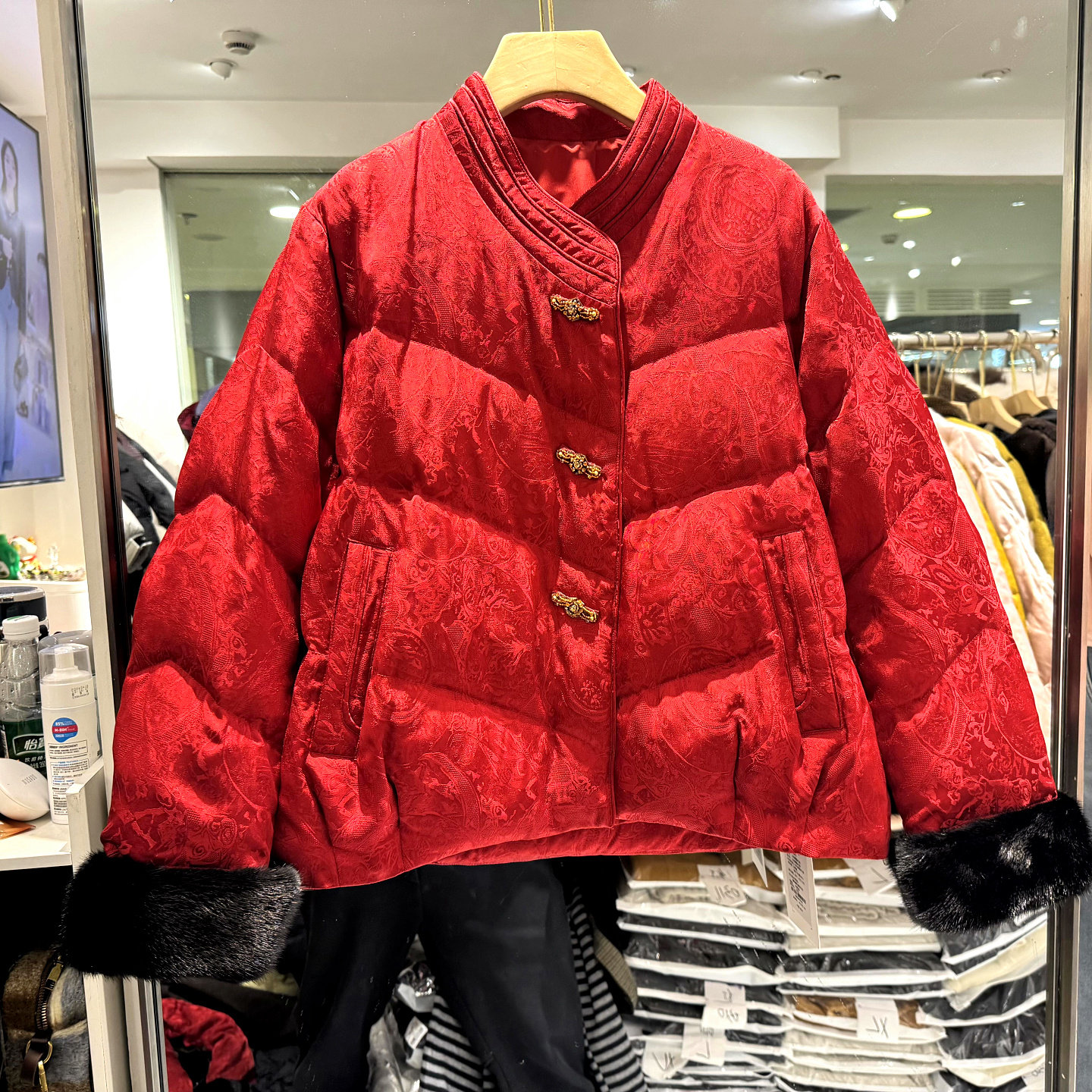 - 大红色羽绒服女