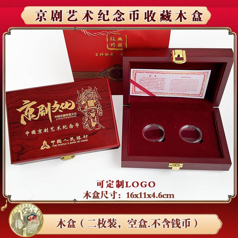 2023年中国京剧纪念币收藏盒彩色5元30mm京剧币硬币钱币收纳保护盒2枚装木盒银行会销礼盒可印logo