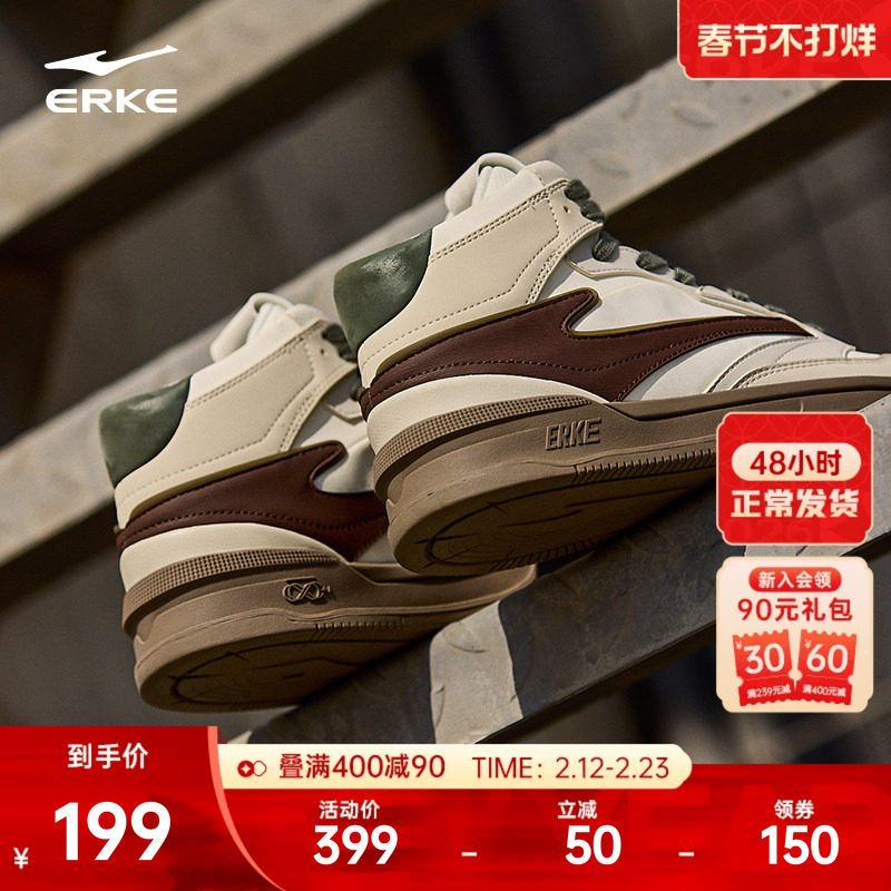 鸿星尔克高帮板鞋男鞋冬季新款鞋子复古契约厚底休闲鞋潮流运动鞋