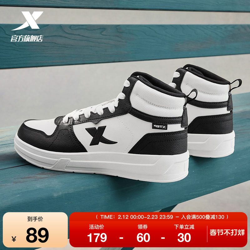 特步高帮板鞋男鞋2025冬季新款休闲鞋潮流女运动鞋皮面软底小白鞋