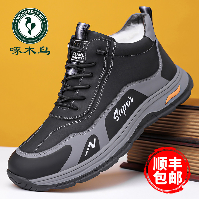 啄木鸟棉鞋男2025冬季新款真皮潮流休闲高帮棉皮鞋加棉保暖雪地靴