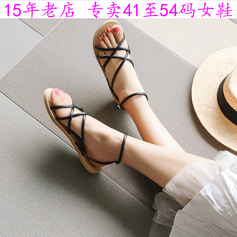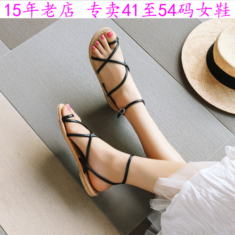 41一46特大码女鞋42外贸款43露趾平跟平底凉鞋子44罗马鞋宽45胖脚