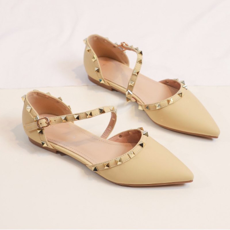 大码低跟尖头凉鞋女41一43夏季铆钉一字带女款平跟小码女鞋313233