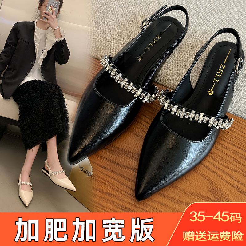 平跟软底尖头玛丽珍女鞋夏季外穿银色脚肥脚宽水钻大码凉鞋41一43