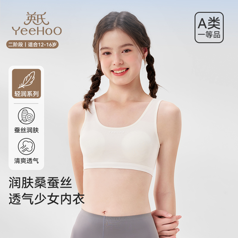 两件装 一二阶发育期后背透气网孔桑蚕丝少女文胸 莫代尔内衣k