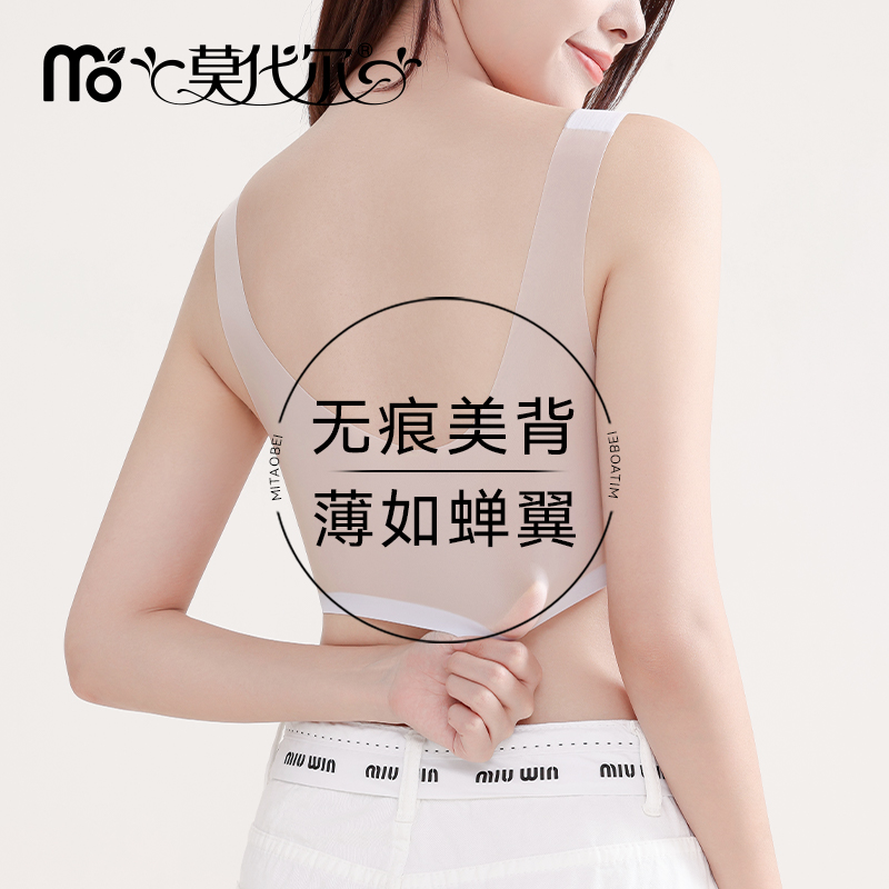 无痕裸感桑蚕丝莫代尔内衣女防滑小胸聚拢抹胸式一片式无钢圈文胸