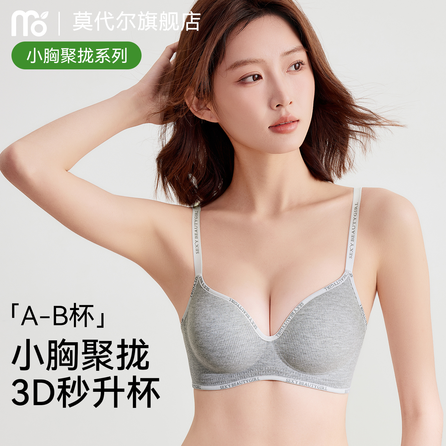 莫代尔内衣女小胸聚拢无钢圈胸罩上托收副乳防下垂调整型薄款文胸