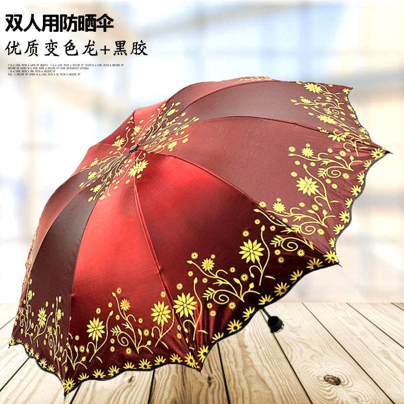 变色闪光黑胶遮阳伞太阳伞 防紫外线折叠晴雨伞 双人折叠加固大伞