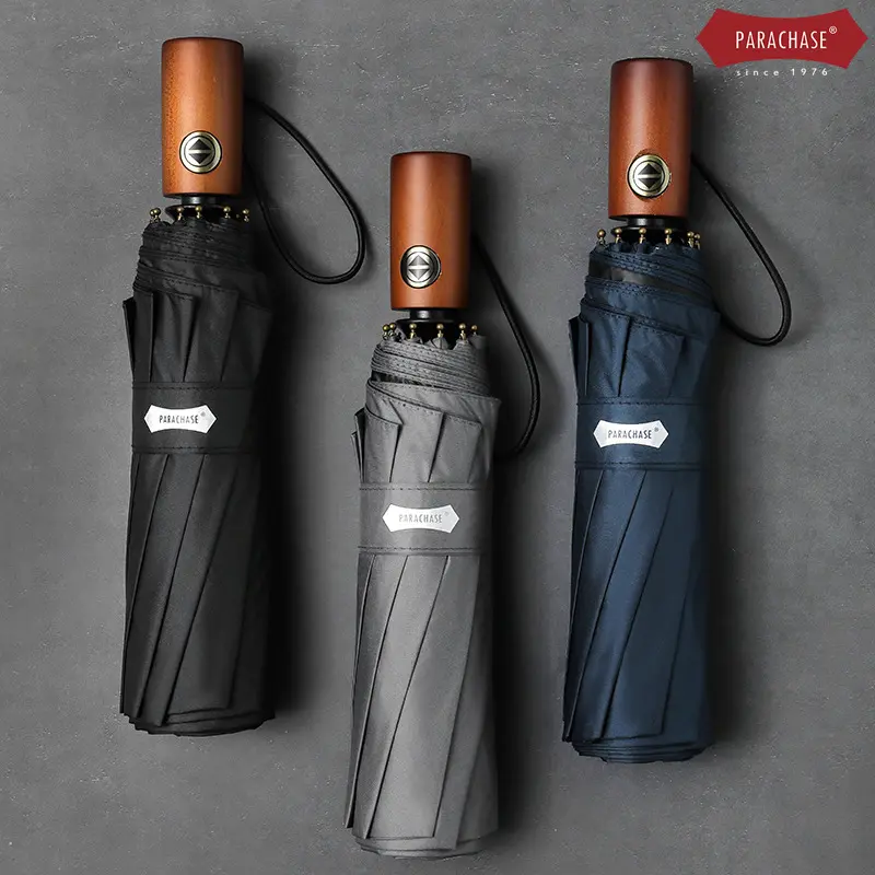 PARACHASE实木黑胶自动伞 防紫外线黑胶防晒伞晴雨两用雨伞商务伞