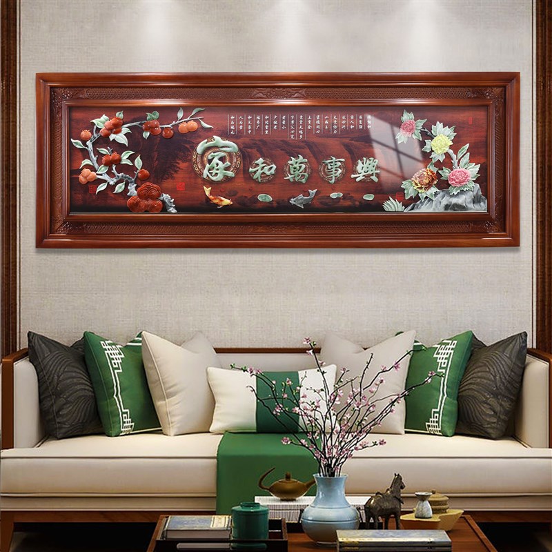 沙发背景墙装饰画中式客厅高档玉雕E画大气办公室挂画中堂大厅壁