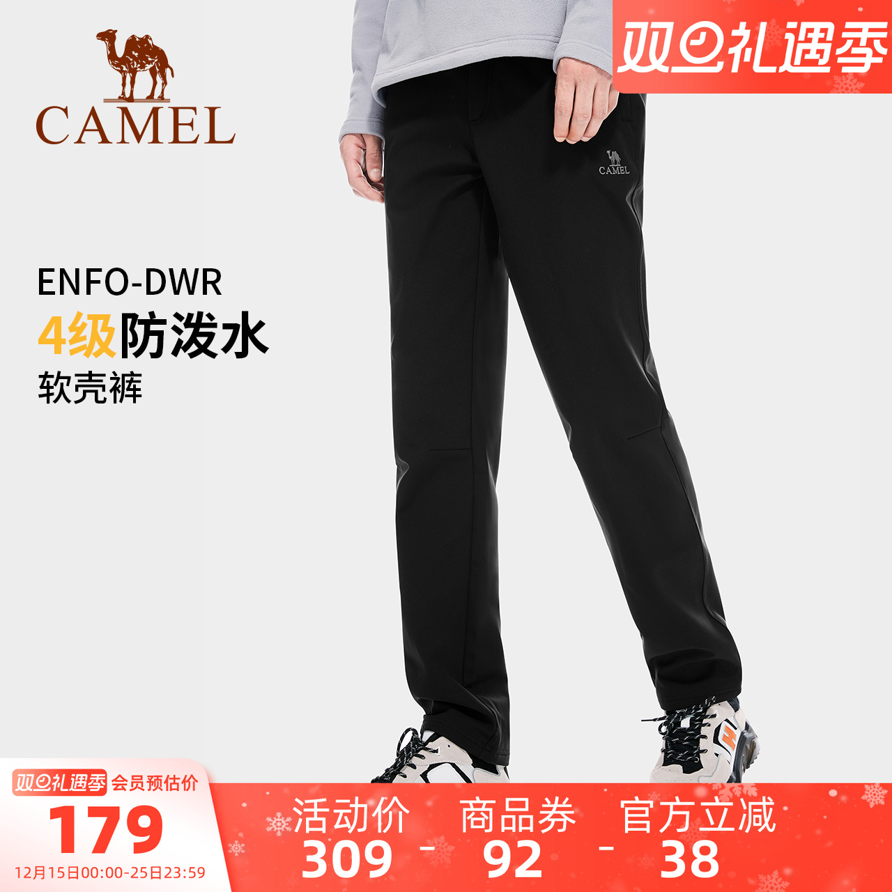 骆驼户外软壳裤男秋冬防风防泼水加绒保暖抗静电弹力直筒登山裤女