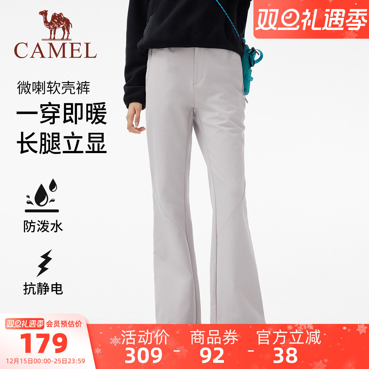 骆驼女装软壳微喇裤2025秋冬新款加绒保暖户外防风防泼水休闲裤