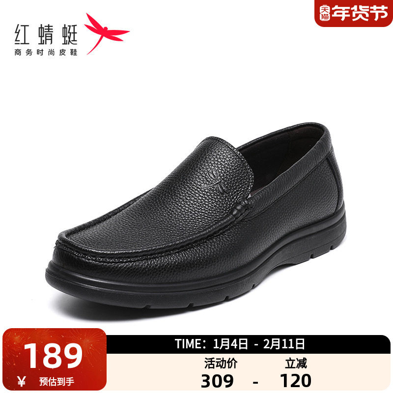 红蜻蜓男鞋商务休闲皮鞋男士职场通勤真皮轻便一脚蹬中老年爸爸鞋