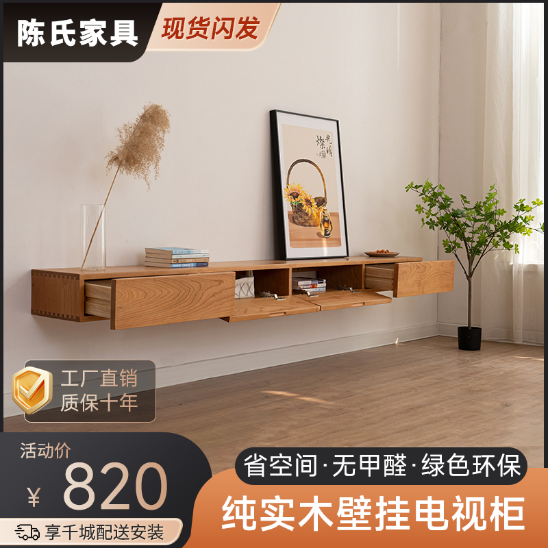 悬空电视柜壁挂式全实木现代简约吊柜小户型客厅家用悬浮电视机柜