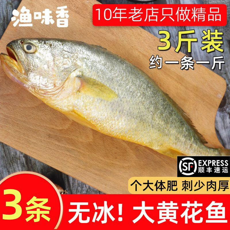 大黄花鱼3斤3条新鲜海鱼黄鱼无冰深海鱼超大冷冻海鲜水产包邮顺丰