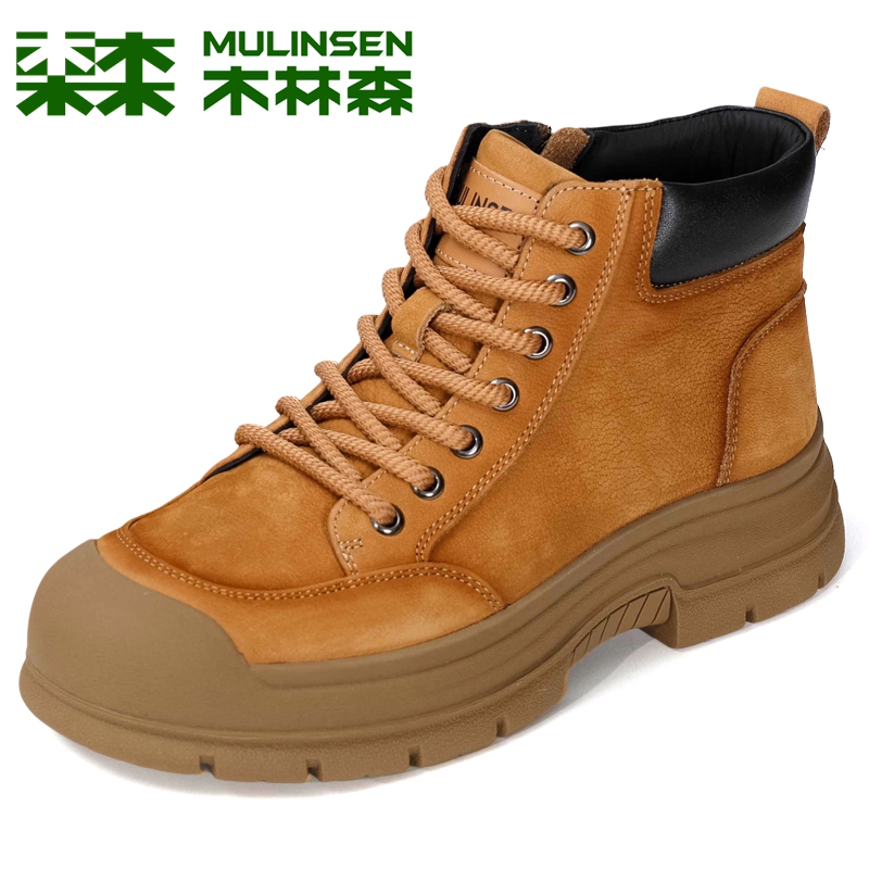 木林森男鞋2025冬季新款真皮保暖马丁靴男士厚底增高美式休闲短靴