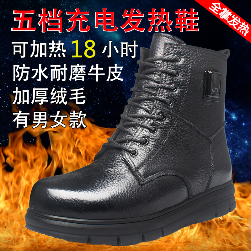 电暖鞋充电可行走男冬季保温加热真皮棉鞋女户外防寒保暖发热短靴
