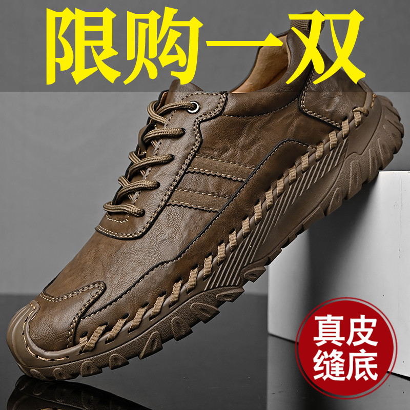 外贸男鞋头层牛皮户外休闲皮鞋男防滑软底真皮百搭春季新款男皮鞋