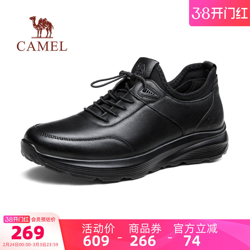 骆驼户外休闲鞋2025冬季新款软面真皮男士耐磨商务健步鞋休闲皮鞋