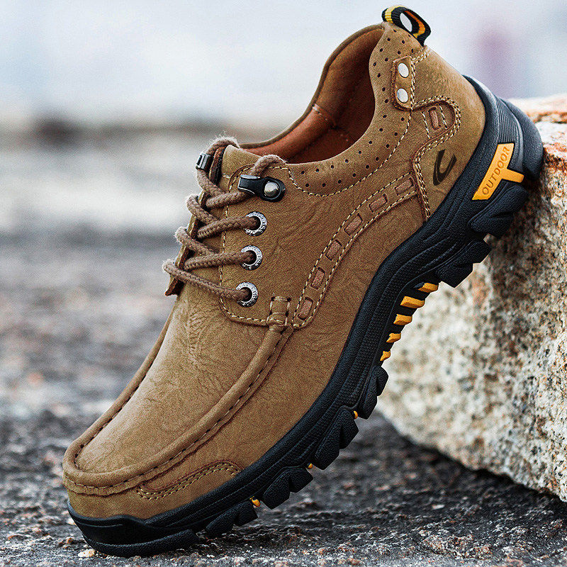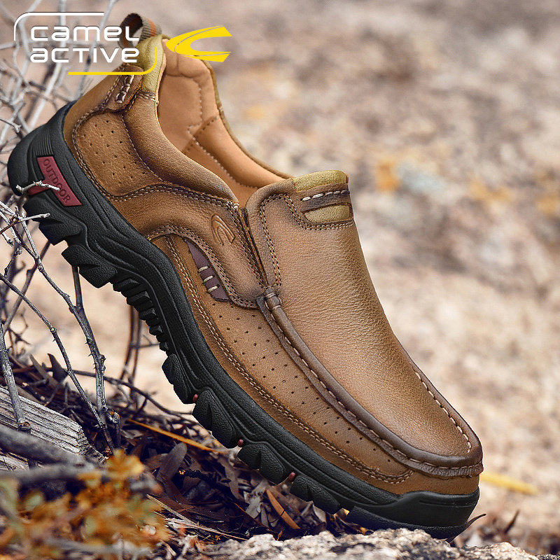 德国骆驼动感男鞋低帮户外休闲皮鞋男真皮工装鞋套脚男士登山鞋子
