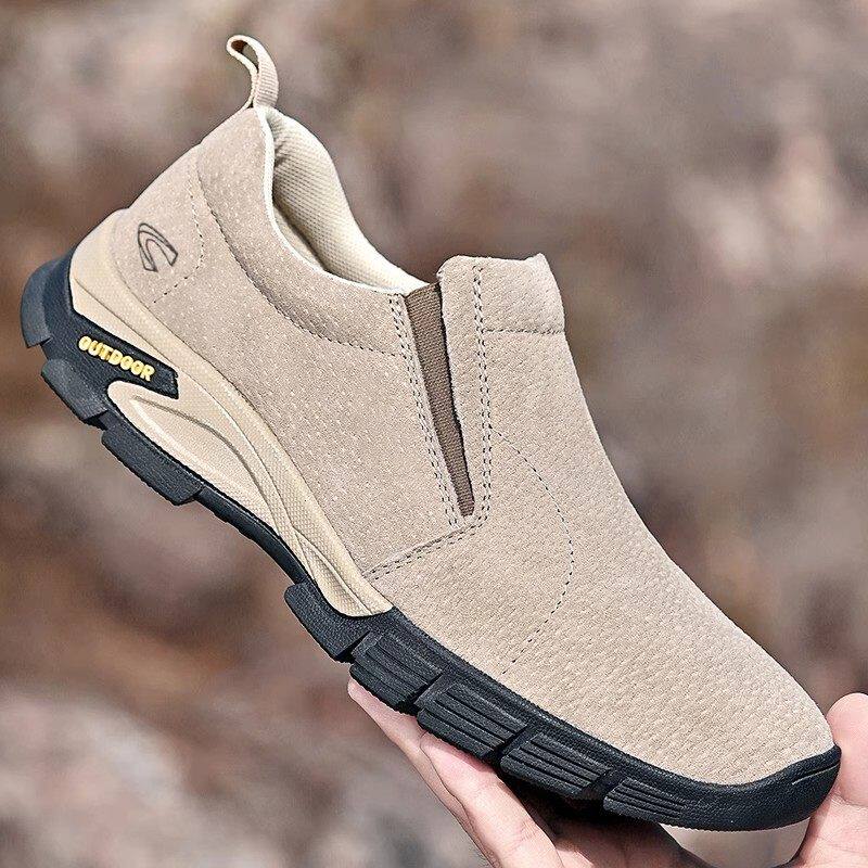 头层牛皮男鞋透气户外休闲皮鞋男真皮厚底一脚蹬爸爸鞋防滑登山鞋