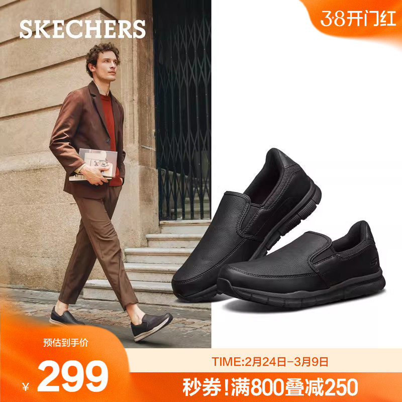 斯凯奇春季男子运动休闲皮鞋乐福鞋户外一脚蹬健步懒人鞋商务皮鞋