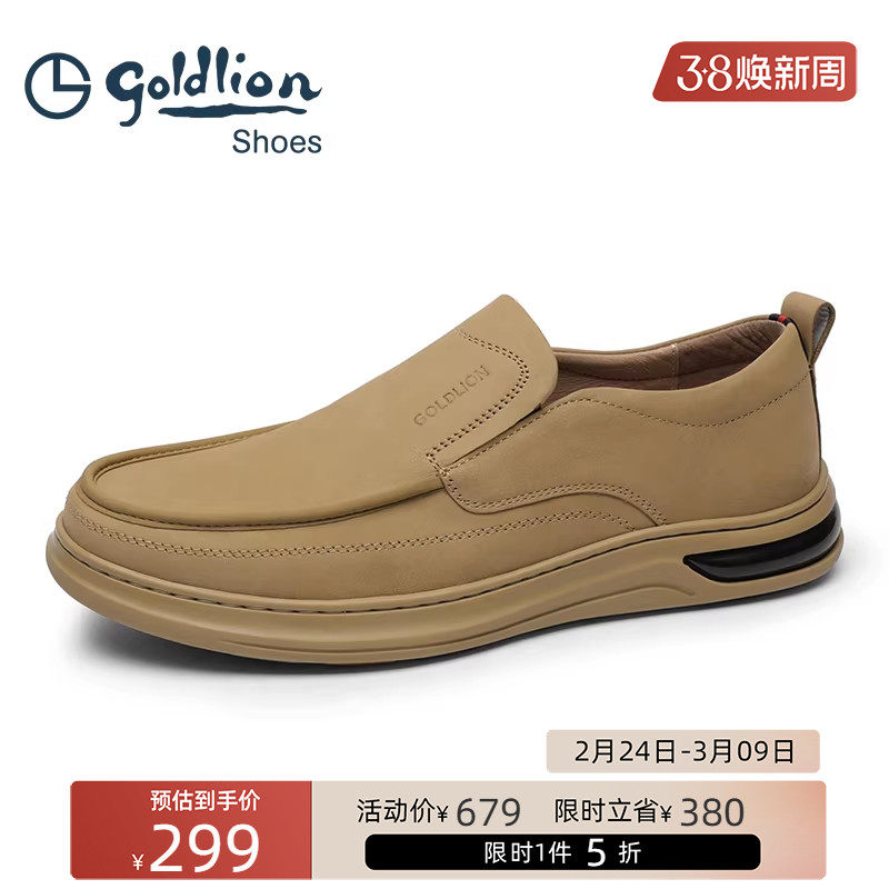 梦特娇男鞋2025秋季户外休闲皮鞋男真皮透气软面一脚蹬透气厚底鞋