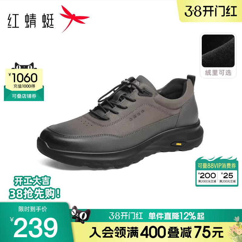 红蜻蜓运动休闲皮鞋春季新款休闲男款鞋真皮男士户外运动爸爸鞋子