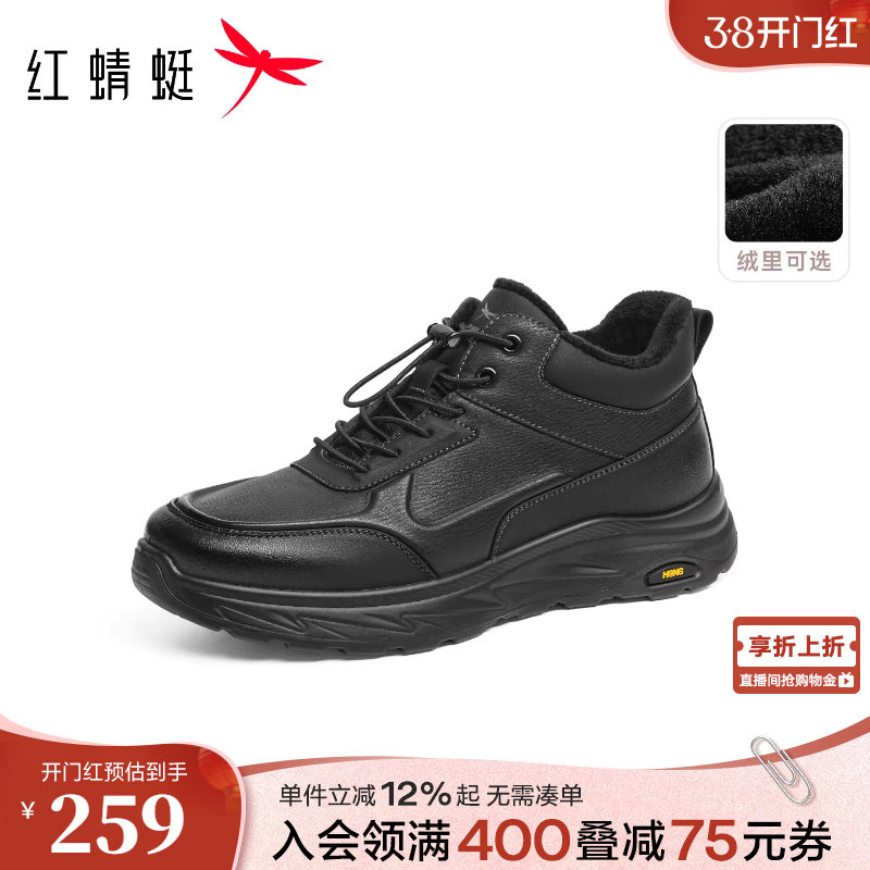 红蜻蜓男士休闲皮鞋冬季爸爸棉鞋厚底加绒中年男鞋运动户外防寒鞋