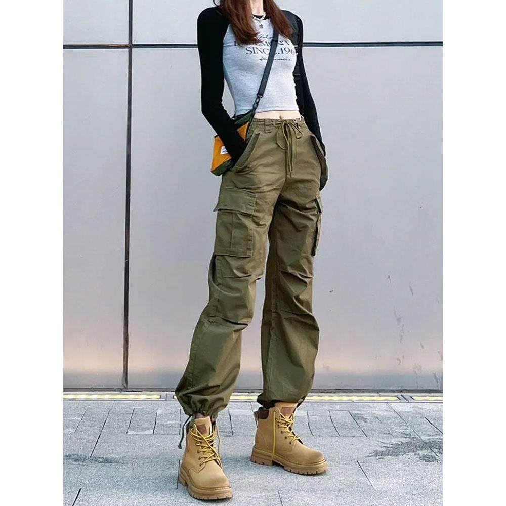 军绿色工装裤女2025春秋新款高腰直筒休闲长裤美式辣妹束脚哈伦裤