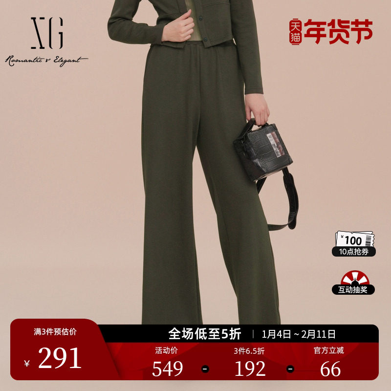 XG雪歌军绿色宽松运动休闲裤2025春季新款通勤简约直筒裤长裤女装