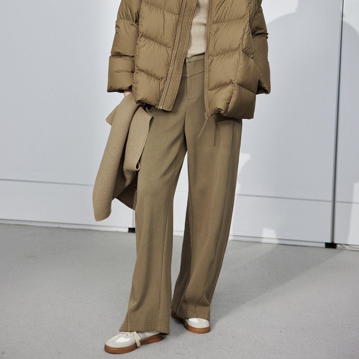uti尤缇2024冬季新款军绿色一体绒厚实卫裤女休闲长裤UJ420203843