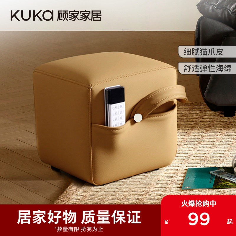 顾家家居木质脚矮凳子简约百搭皮艺换鞋凳坐凳板凳架脚凳可储物XJ