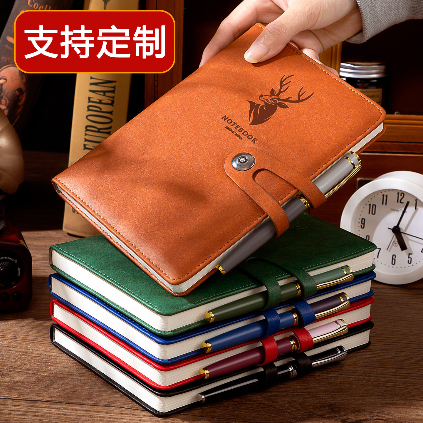 a5商务笔记本本子定制可印logo刻字工作办公用记事本加厚高档会议记录本成人皮面搭扣日记本企业订制封面内页