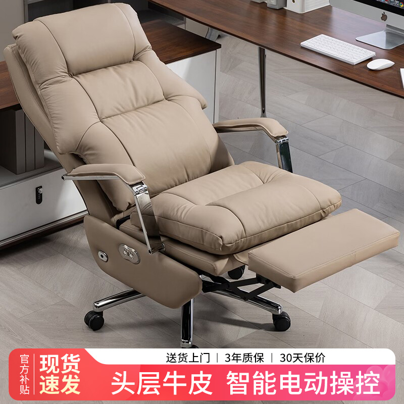 老板椅可躺按摩电动真皮家用办公椅轻奢牛皮总裁座椅子舒适大班椅